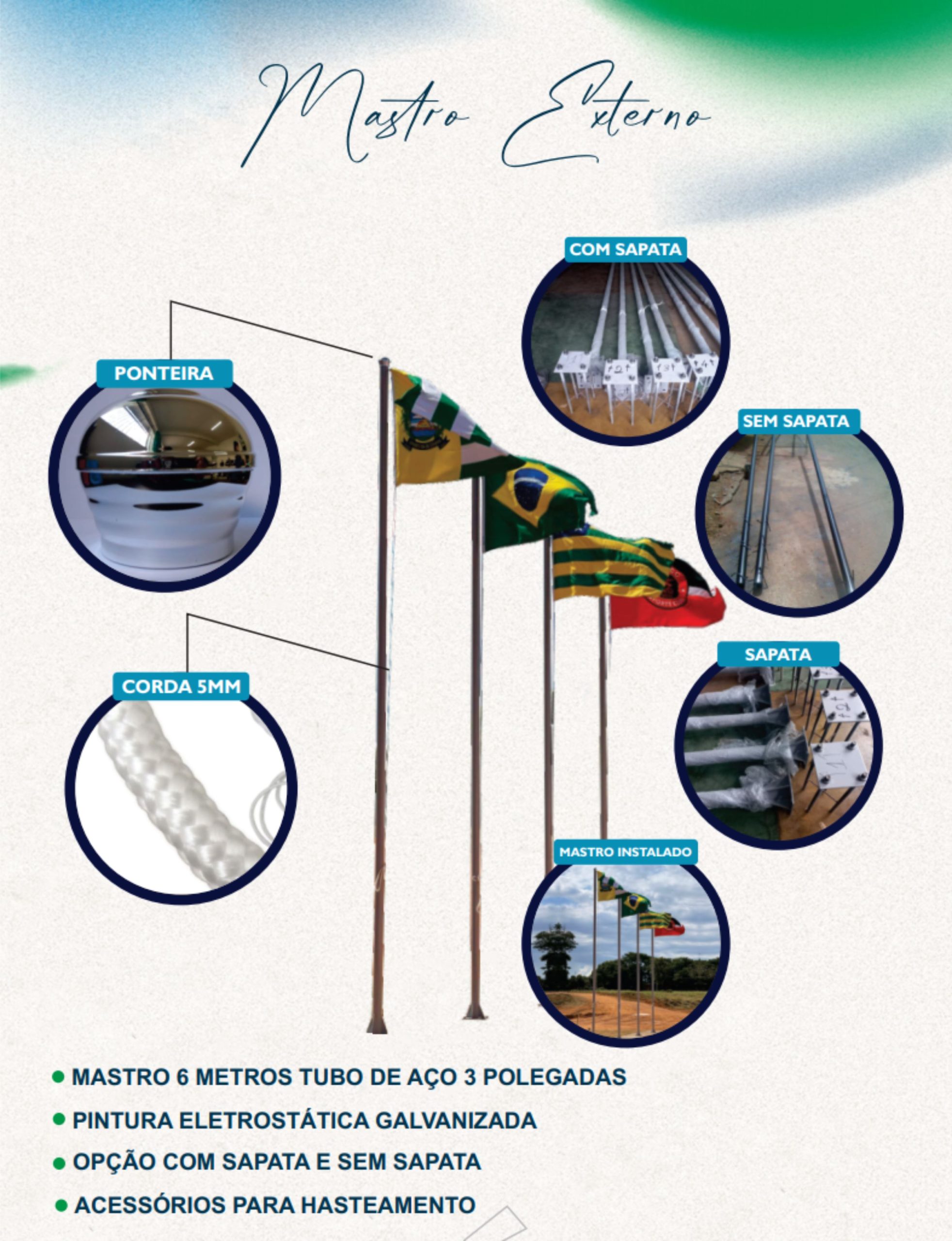 • Mastro 6 metros tubo de aço 3 polegadas